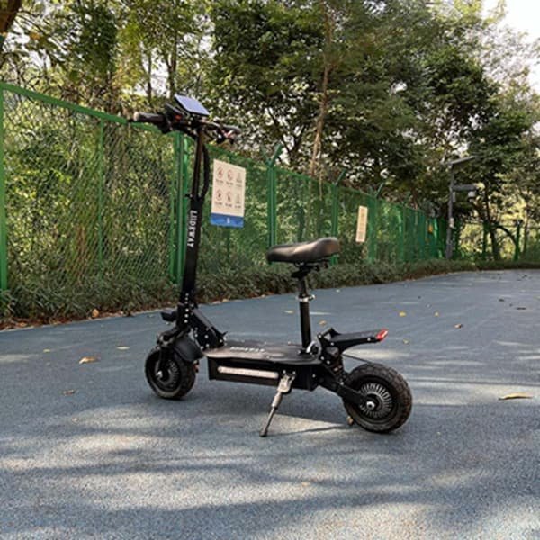 The Kaabo Wolf Warrior 11 is an import popular for its ruggedness and power. With dual motors, it can handle off-road terrains and steep inclines effortlessly, making it perfect for outdoor enthusiasts who need a reliable scooter that can handle more than just city streets.