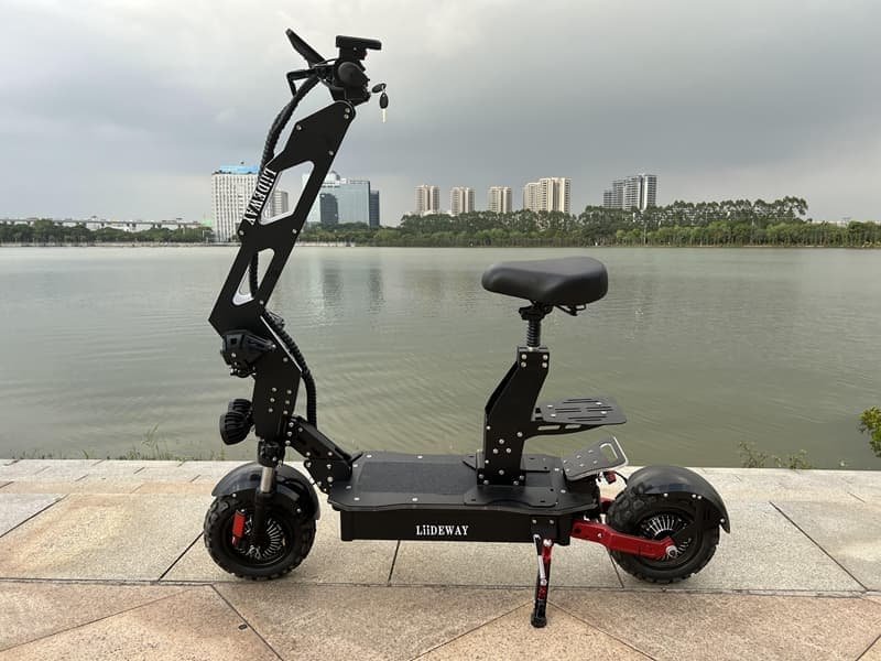 Another strong offering from Liideway is the 10-inch dual-drive electric scooter. Smaller in size but still powerful, this model is perfect for riders who want an agile scooter that can handle both city streets and dirt paths. Its compact frame makes it easier to store, but it doesn’t compromise on off-road capability.
